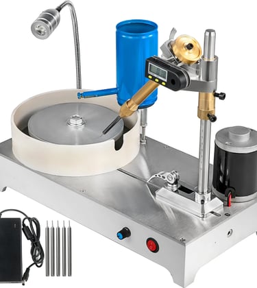 - Máquina de facetar: o coração do processo. Permite controlar ângulos e profundidade de cada faceta.