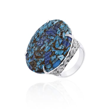 A turquesa natural, por sua vez, retorna com força total, mas sob uma nova leitura. Em vez do visual excessivamente boho, ela surge em designs contemporâneos, combinada a metais polidos ou texturizados e a linhas mais arquitetônicas. Seus tons azul-esverdeados, muitas vezes marcados por veios naturais, reforçam o apreço pelo aspecto orgânico e artesanal.