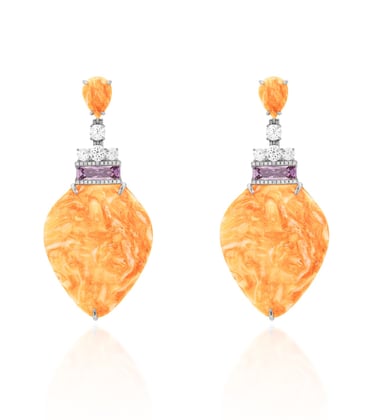 O topázio imperial, com seus tons dourados e alaranjados, também ganha espaço, especialmente em joias de inspiração clássica reinterpretadas de forma contemporânea. Essas pedras são frequentemente combinadas ao ouro amarelo, criando uma sensação de continuidade cromática que reforça o luxo e a sofisticação.