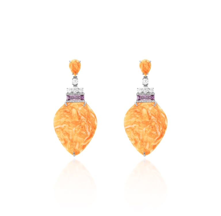 O topázio imperial, com seus tons dourados e alaranjados, também ganha espaço, especialmente em joias de inspiração clássica reinterpretadas de forma contemporânea. Essas pedras são frequentemente combinadas ao ouro amarelo, criando uma sensação de continuidade cromática que reforça o luxo e a sofisticação.